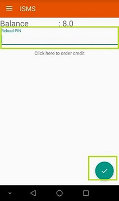 6. To reload credit, please view tutorial how to recharge credit HERE. After ordering the credit, you will receive a reload code and key in the reload pin. Tap on "tick" button to add credit.
